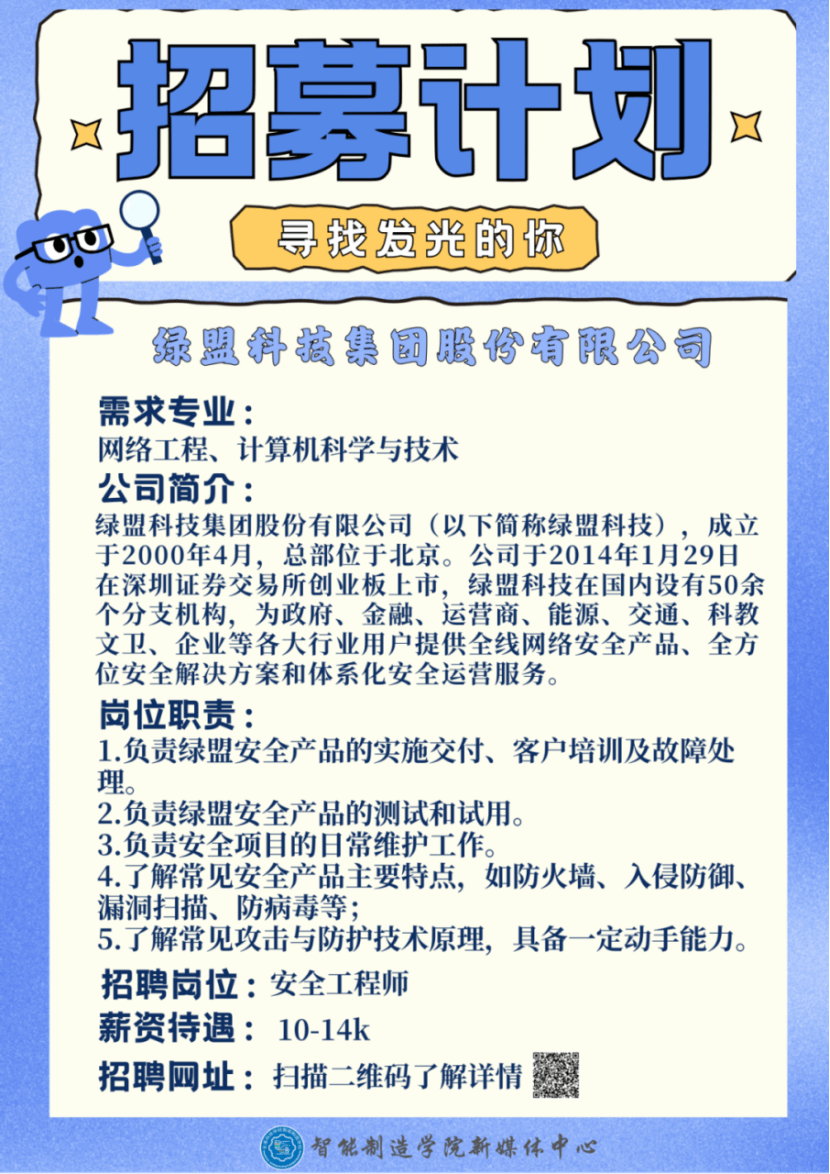 本公众号致力于提供专业的招聘信息汇总及转发服务,仅负责信息汇总与推送。如有侵权,请及时与我们联系以便删除。在求职过程中,同学们务必保持警惕。祝愿大家都能找到心仪的工作,开启精彩的职业生涯!后续学院还会持续为大家推送更多优质就业信息,请保持关注。